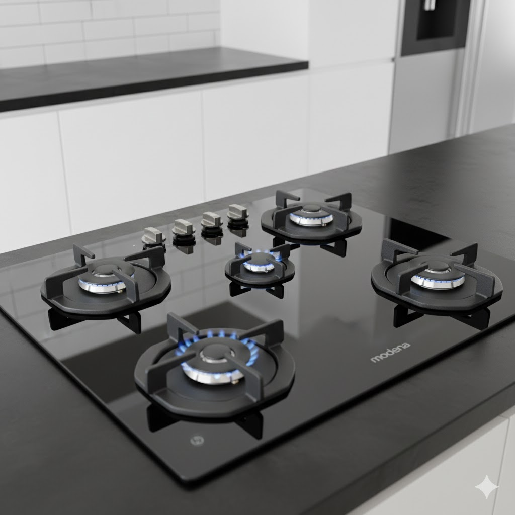 Modena memang dikenal dengan estetika yang menawan, dan FC-8943 L menjadi salah satu contoh terbaik dari gaya desain mereka. Permukaan kompor menggunakan kaca tempered premium yang tahan panas dan mudah dibersihkan. Tekstur kaca hitam yang mengkilap memberikan kesan mewah, sementara bentuknya yang minimalis membuat kompor ini cocok ditempatkan pada berbagai gaya dapurโ€”baik modern, industrial, maupun classic-minimalist.
